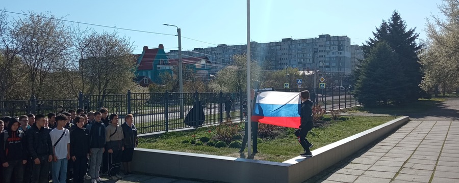14.04.2025г. - новая неделя в ГБПОУ РК "Симферопольский колледж радиоэлектроники" началась традиционно с церемонии поднятия Государственного Флага под гимн России.