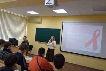 В ходе мероприятия, Евгения Владимировна разъяснила студентам, что такое ВИЧ, какими путями он передается, о первых симптомах заражения инфекцией, какие последствия он несет и как уберечься от СПИДа.
