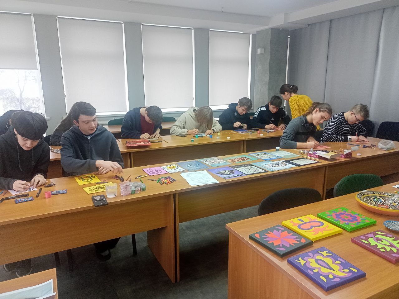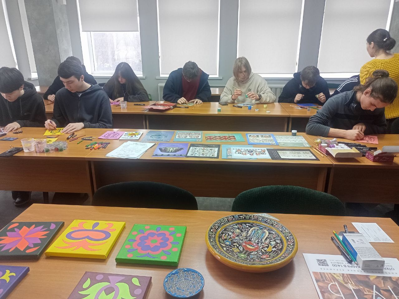 Художница Эдие Мустафаева провела познавательную беседу о культурной самобытности и традициях крымскотатарского народа, поделилась историей своего творческого становления, научила ребят видеть орнамент как язык, которым можно говорить со зрителем о самом главном.