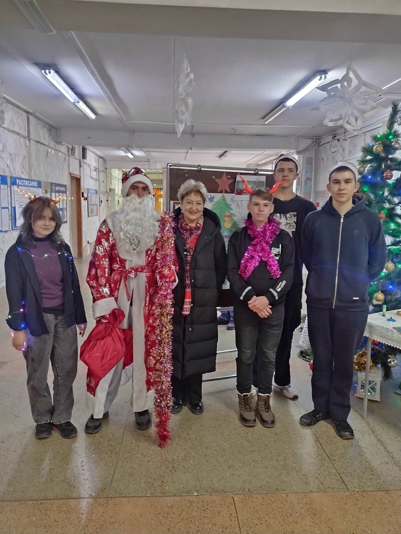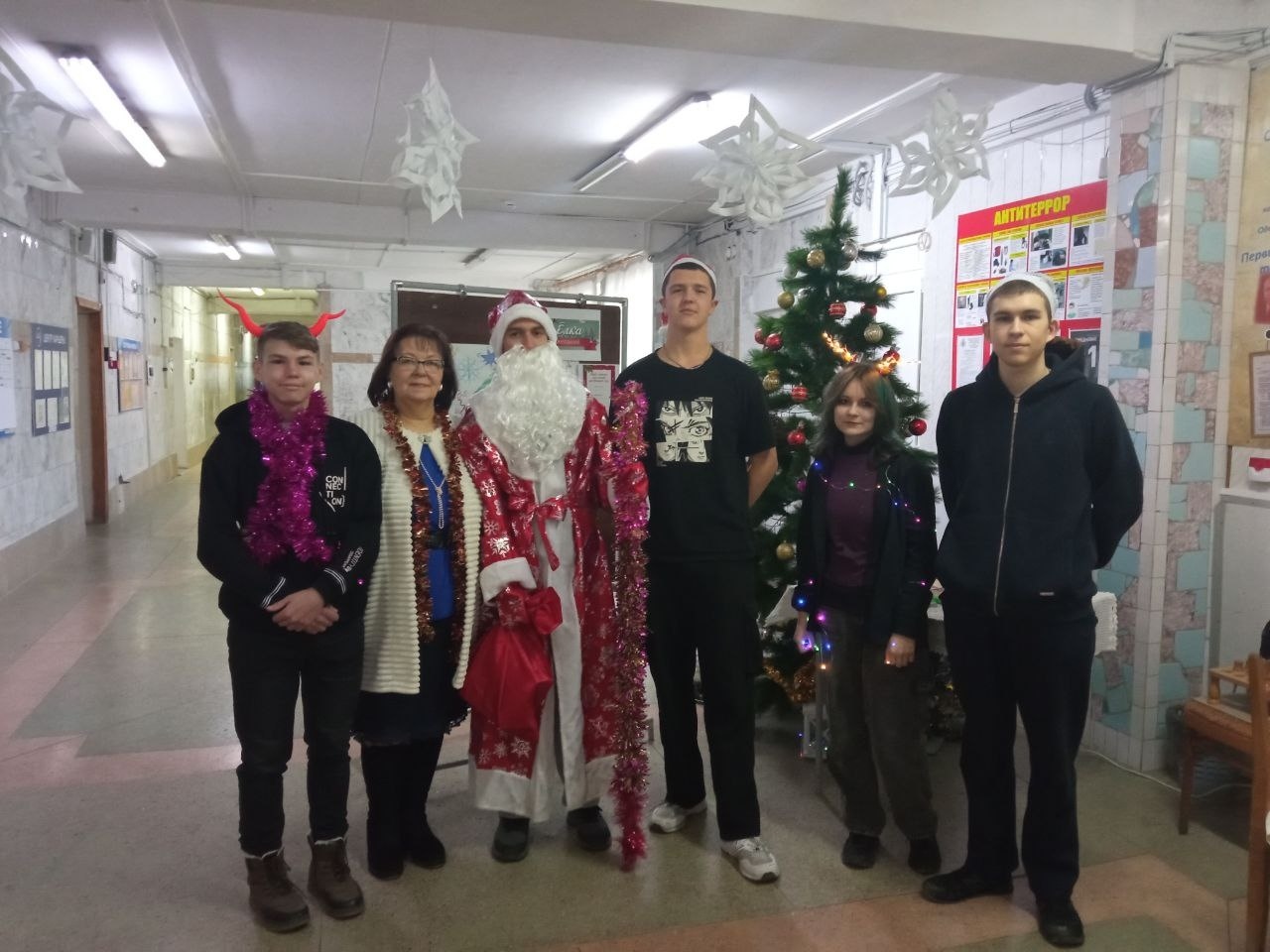 Студенты групп ПР-6, ЭМ-3, СА-4, ЭЛ-18 с огромным удовольствием поздравляли всех с наступающим Новым годом, предлагали написать самые заветные желания на ёлочных игрушках, которые были развешаны на ёлочке.